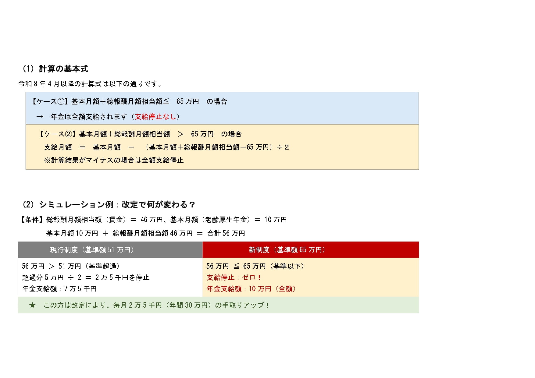 ・2026年4月から、年金が減額される基準額が51万円→65万円に引き上げ。