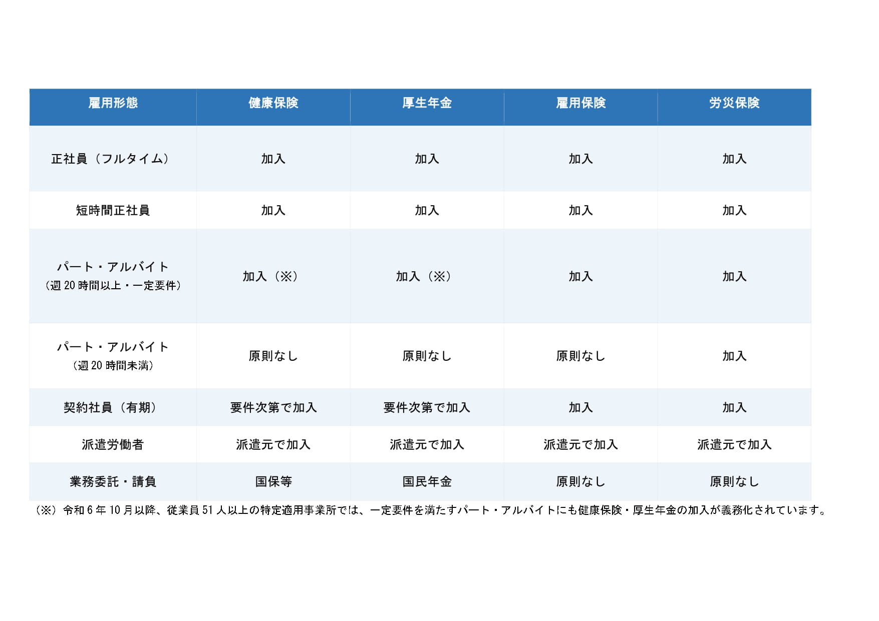 第5章.雇用形態別に見た社会保険の加入条件一覧